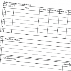 Der Rapport ist für das Erfassen von Arbeitsstunden und Materialverbrauch. Zusätzlich hat es Linien für einen Kurzbeschreib von den ausgeführten Arbeiten. Mit dem Rapport können Sie auch gleich eine MWST-Pflichtige Rechnung oder Quittung ausstellen. Der Rapport eignet sich auch für den direkten Versand ohne zu adressieren in einem Kuvert mit Sichtfenster rechts.