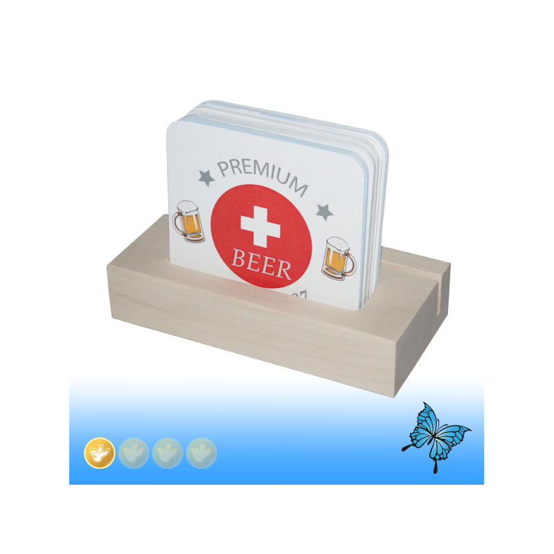 Holzsteller mit Schlitz für Bierdecke und Nut für Menükarte