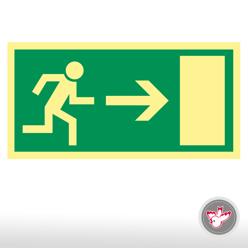 Selbstklebende Sicherheitsgrafik für Selbstmontage. Das starke Nachleuchten sorgt für die notwendige Sicherheit im Gebäude. DIN-Norm 67510.