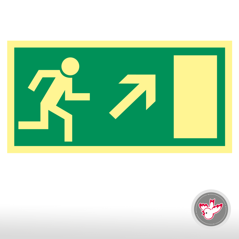 Selbstklebende Sicherheitsgrafik für Selbstmontage. Das starke Nachleuchten sorgt für die notwendige Sicherheit im Gebäude. DIN-Norm 67510.