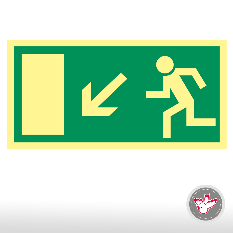 Selbstklebende Sicherheitsgrafik für Selbstmontage. Das starke Nachleuchten sorgt für die notwendige Sicherheit im Gebäude. DIN-Norm 67510.