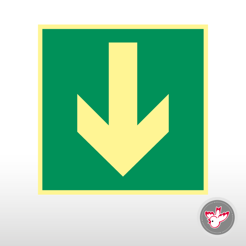 Selbstklebende Sicherheitsgrafik für Selbstmontage. Das starke Nachleuchten sorgt für die notwendige Sicherheit im Gebäude. DIN-Norm 67510.